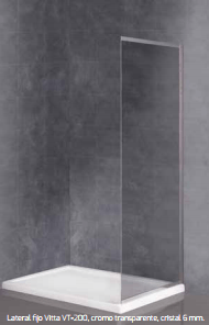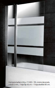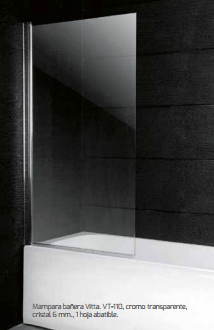 Mampara vidrio templado 6mm, perfil anodizado cromo brillo, puerta abatible hacia el interior, brazo telescópico incluido, sistema antical.